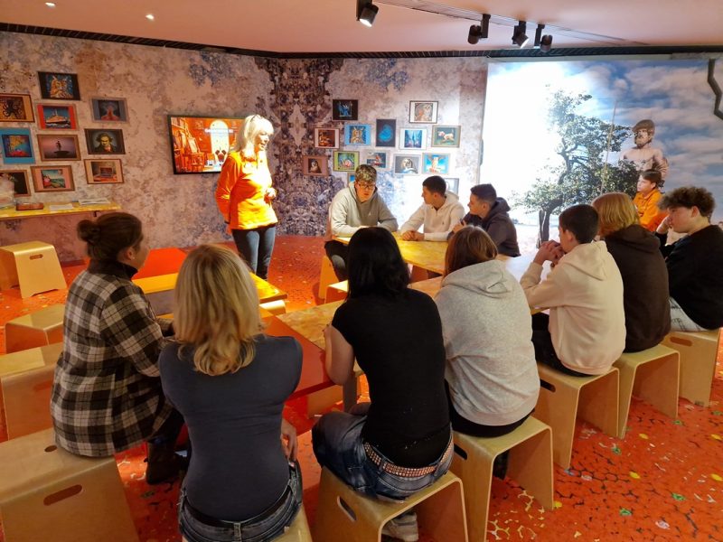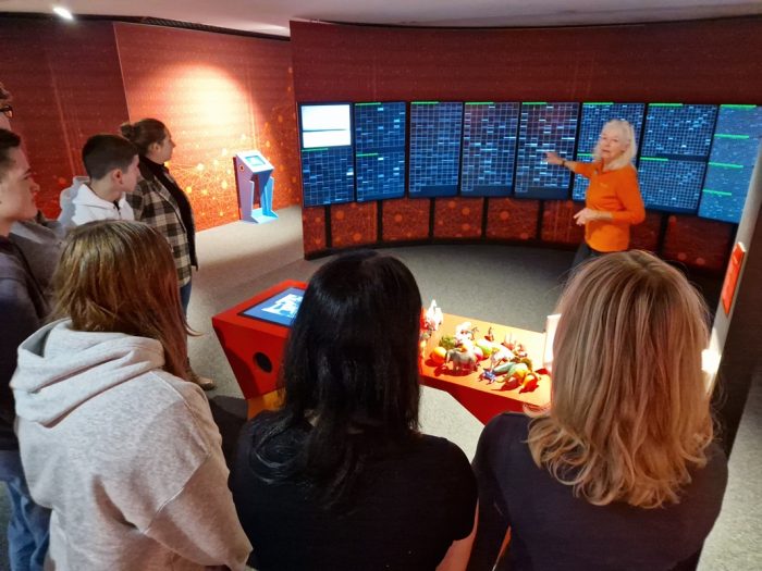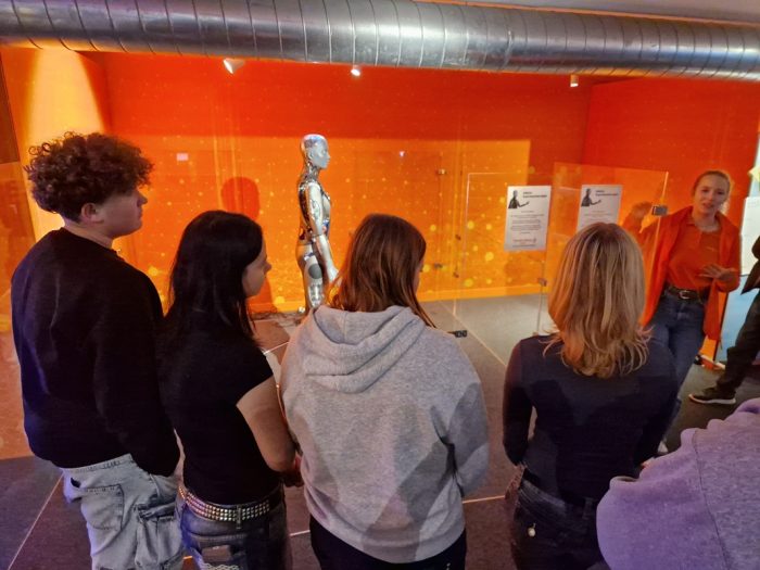 Nach einer kurzen Begrüßung im Museum erhielten die Schülerinnen und Schüler eine Einführung in die aktuelle Ausstellung zur Künstlichen Intelligenz. Dabei wurde deutlich, dass KI längst Teil unseres Alltags ist: von Sprachassistenten über Bilderkennung bis hin zu autonomen Fahrzeugen.