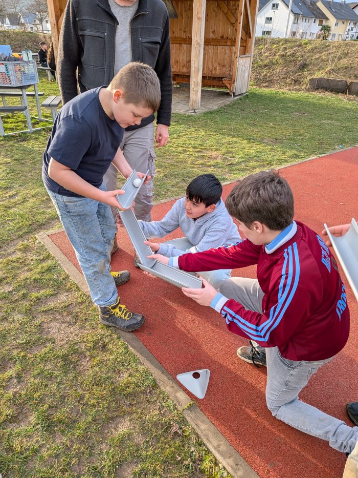 Wir spielten spannende Teamspiele wie „Wo ist Wilma Wilson?“ und versuchten in Gruppen, mit langen Rinnen einen Ball quer über das Gelände von A nach B zu transportieren. Das war gar nicht so einfach, aber am Ende haben wir es gemeinsam geschafft!